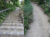 Ara ara dinlenerek yaptığımız yaklaşık 20 dakikalık yürüyüşün ardından, Yoros Kalesinin dibinde bulunan çay bahçeleri ve restoranlara ulaştık. Bu restoranların içerisinden geçerek, dolaşa dolaşa kaleye çıktık. Mekanların olduğu yol üzerinde taştan merdivenler yapılmış ve bu sayede rahat bir şekilde yolunuza devam edebiliyorsunuz. Ancak ne zaman ki mekanlar bitiyor, işte oradan itibaren dar, kaygan ve ortası akan sulardan çukur olmuş bir patikadan yürüyerek devam etmek zorunda kalıyorsunuz. Keşke sadece mekanlara kadar değil de, sonraki birkaç metreye de merdiven yapılarak gelen insanların rahat ulaşımı sağlansaymış. Sonuçta kalenin genç yaşlı ciddi bir ziyaretçi kitlesi var ve o yolda sürekli insanların indiğini veya çıktığını görebilirsiniz. Mekanlar bitince yol da bittiği için ziyaretçilerin zaman zaman yürümekte zorlandığını görebiliyorsunuz.