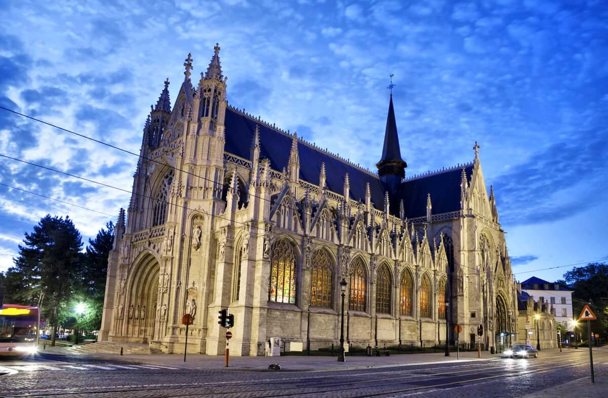 Aziz Michael ve Aziz Gudula’ya (Brüksel’in koruyucu azizleri) adanan bu Gotik kilisenin inşaatına 1225’te başlanmış ancak 15. yüzyılda tamamlanmış. Jan van Ruysbroeck tarafından tasarlanan 69 metrelik ikiz kuleleri bulunan kilise, Bernard van Orley tarafından tasarlanan olağanüstü vitray pencerelere ev sahipliği yapmaktadır.