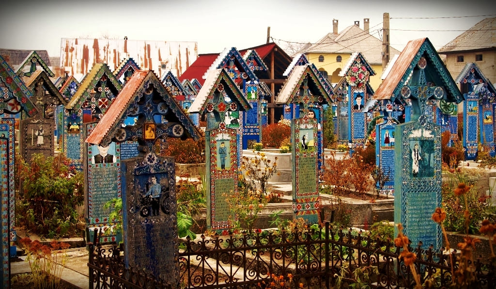 Săpânța köyünde bulunan Neşeli Mezarlık (Cimitirul Vesel), ölümün kasvetli olmadığına dair Romanya’nın sıra dışı bakış açısını sergiler.