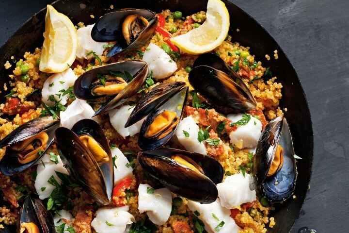 Daha çok denize kıyısı olan şekirlerde ve özellikle Valensiya'da bulunan Paella yemeğinde, yavaş pişirme işlemi sayesinde tatlar ve aromalar harika bir şekilde harmanlanır. Resmini safrandan alan, parlak sarı pirinci ile restoranlarda paellayı kolayca bulabileceksiniz.