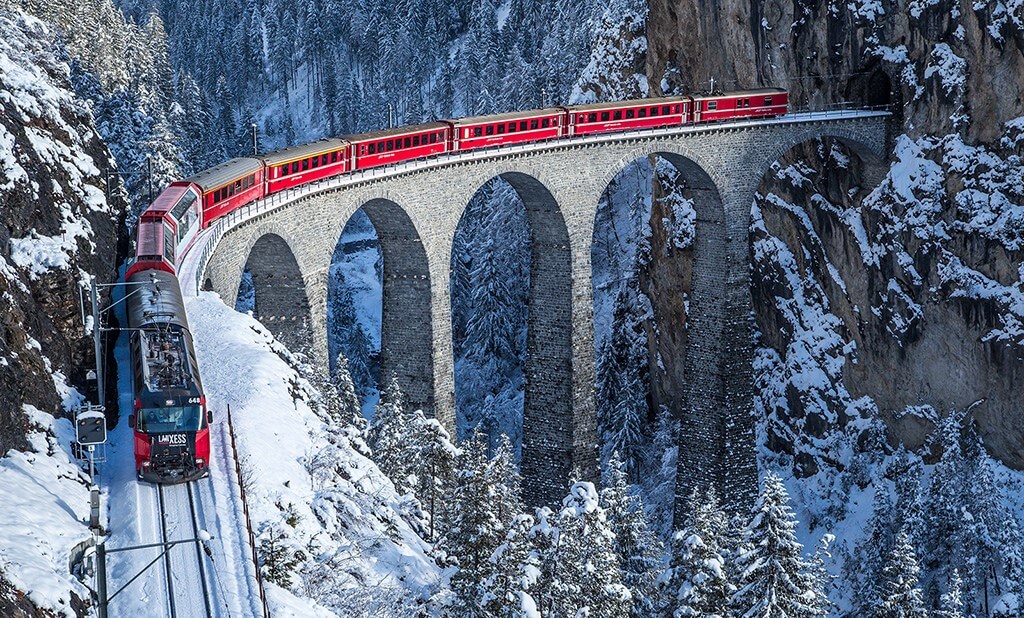 Bernina ExpressBuzulların, dağ zirvelerinin ve kasabalarının manzarası, 60 metrelik ve nefes kesen manzaraya uzanan köprüler muhteşem manzaralar sunuyor. İsviçre'de en muhteşem ve popüler etkinliklerden biri olan bu tren gezisini mutlaka denemenizi tavsiye ediyoruz.